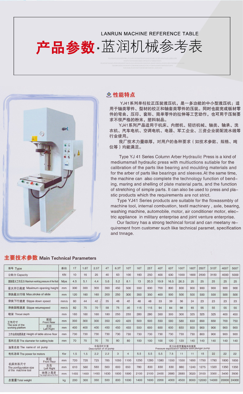 無錫藍(lán)潤機(jī)械是一家集生產(chǎn)和銷售單柱液壓機(jī)、龍門液壓機(jī)、液壓校直機(jī)、自動校直機(jī)等各類型號的專業(yè)液壓機(jī)制造商,液壓機(jī)產(chǎn)品遠(yuǎn)銷國內(nèi)外,質(zhì)優(yōu)價(jià)廉,品種齊全,受到廣大客戶的好評。