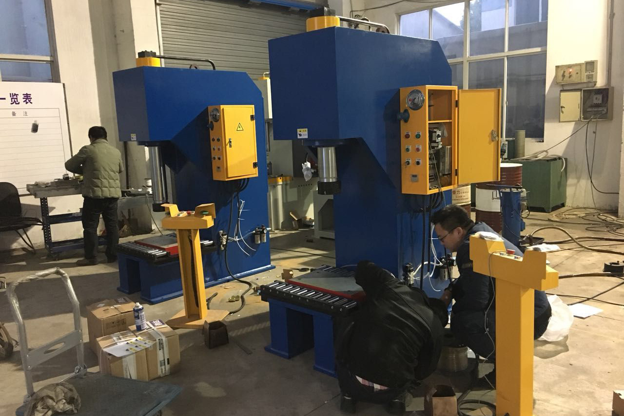 單柱液壓機(調試現場)-單柱液壓機-龍門液壓機,液壓校直機,伺服液壓機,全自動校直機-無錫藍潤機械有限公司